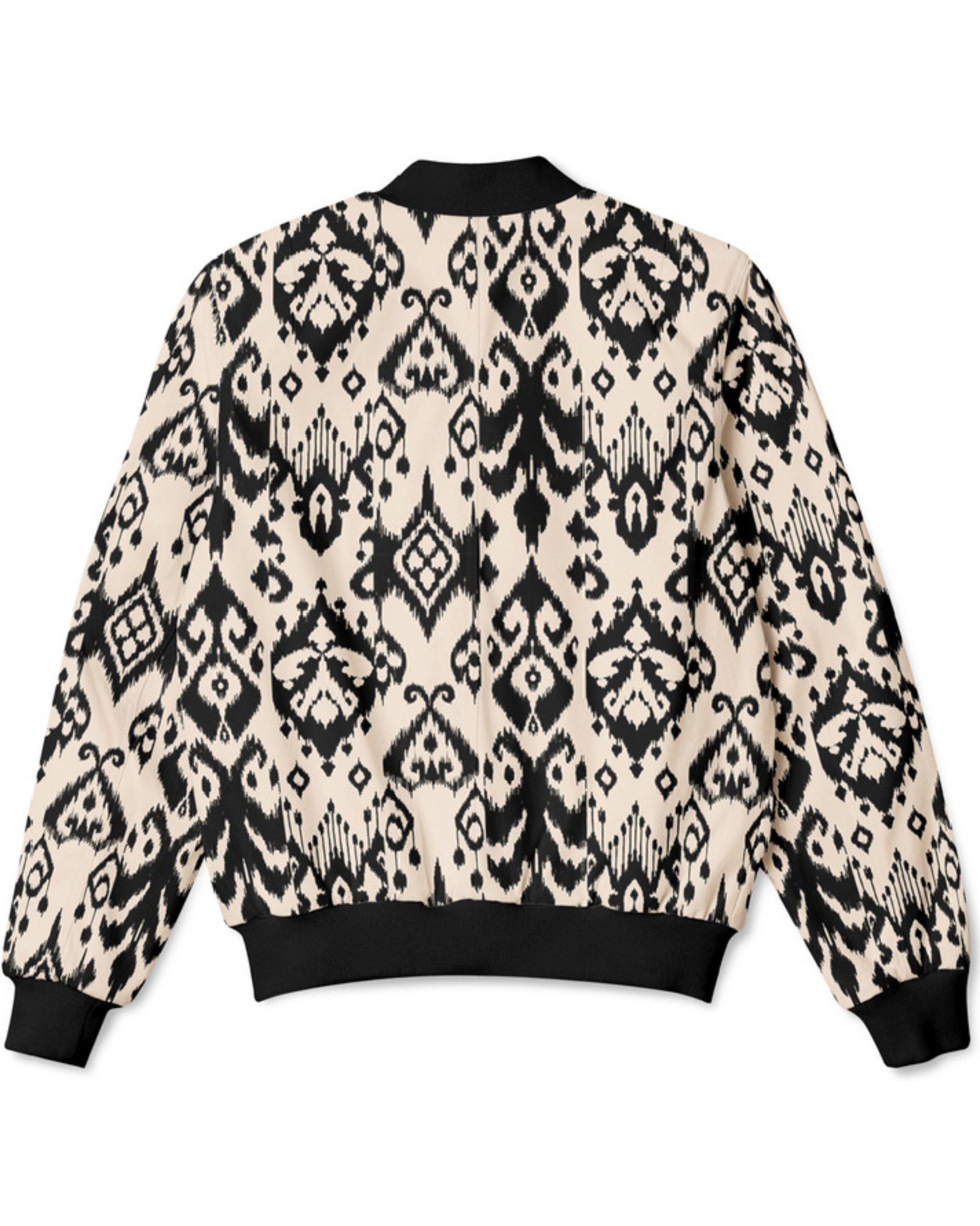 The Pattern Authority Bomber is built on repetition as power. Symmetry, contrast, and inherited geometry form a surface that feels both archival and assertive—where tradition is not referenced, but reassembled.